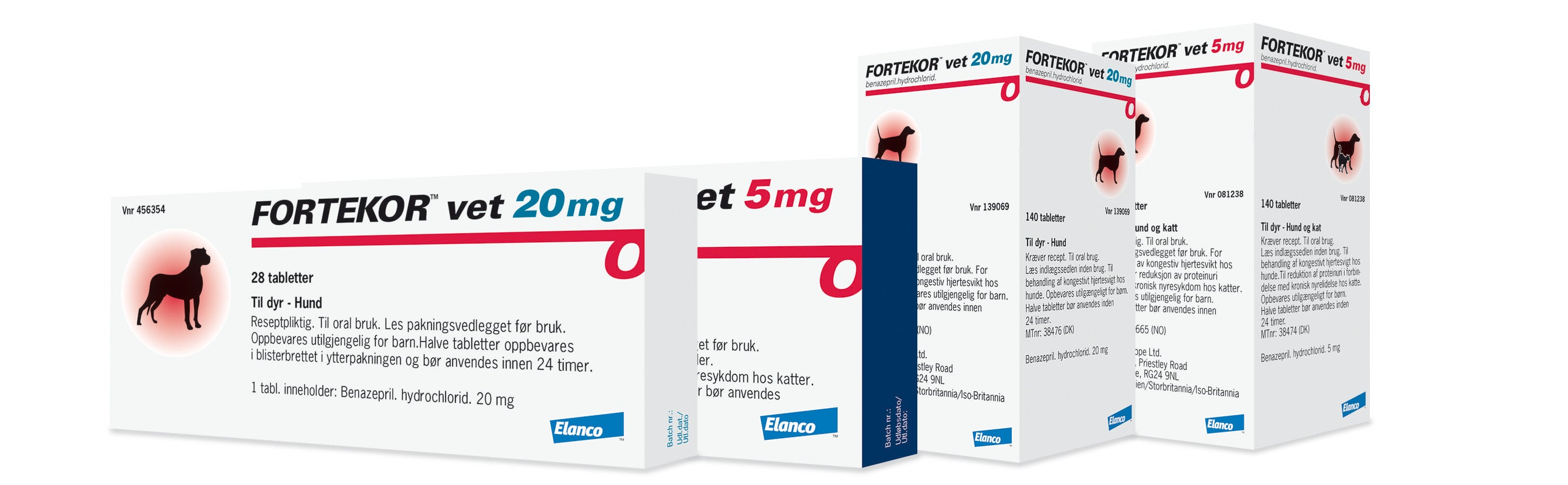 Fortekor vet., 2,5 mg, tablett. Fortekor vet., 5 mg, tablett. Fortekor vet., 20 mg tablett.